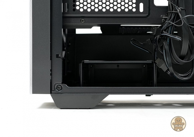 스토리지 베이의 위치 조절 역시 장점이다. 베이를 전면 쪽으로 완전히 밀착해 설치하면 최대 270mm에 달하는 파워 공간이 확보되어 대형 모듈러 파워도 무리 없이 장착된다. 스토리지 접근이 잦은 사용자라면 베이를 살짝 뒤로 이동해 설치할 수 있으며, 이 경우에도 240mm의 공간이 확보되어 대부분의 파워는 문제 없이 들어간다. 표준 ATX 파워가 약 140mm 전후라는 점을 감안하면 장착 호환성에 대한 우려는 사실상 없다.