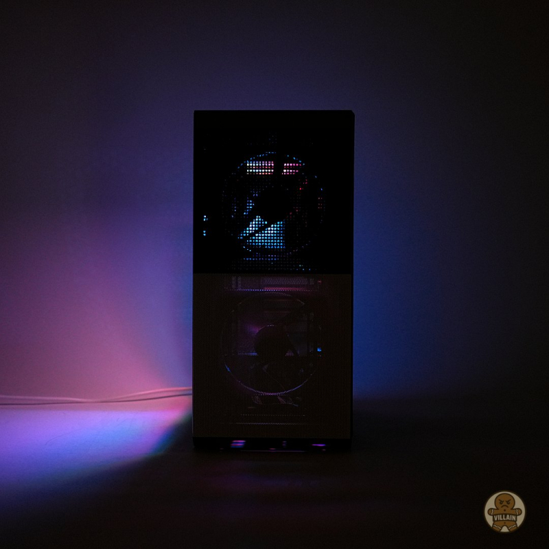 필터 뒤에는 140mm 대형 팬 두 개가 자리한다. 내부 공간이 제한적인 m-ATX 규격임에도 충분한 흡기량을 확보해 쿨링에 대한 부담을 최소화한다. 낮은 회전수에서도 높은 풍량을 확보하며, 소음은 25.5dBa 수준에 그쳐 냉각과 정숙성 사이의 균형을 안정적으로 유지한다. 필요 이상의 과장을 하지 않아 오히려 설계의 성숙함이 느껴지는 부분이다.