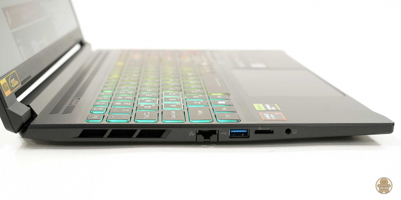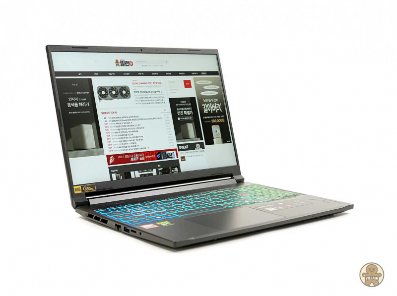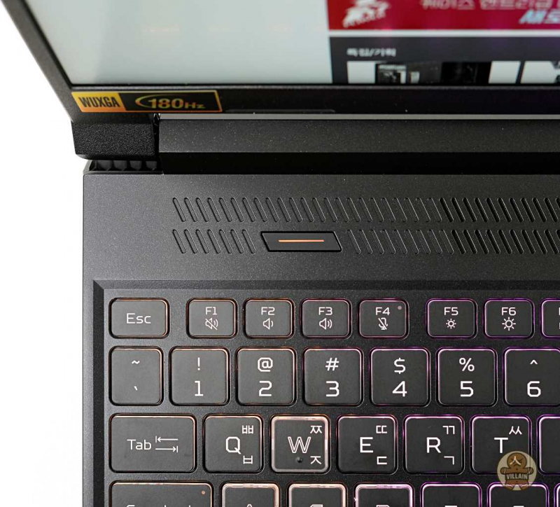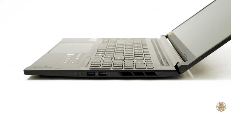 측면에서 바라보면 상판과 하판이 맞물리는 경계도 쭉 뻗어있다. 손가락으로 굳이 들춰보지 않아도 견고한 느낌이 확실하다. 얇은 제품에서 드러나는 일명 '낭창낭창'한 느낌이 없다는 말이다. 덕분에 게이밍 제품일거라는 예측에 뭔가 게이밍 장비 특유의 개성적인 분위기를 상상했다면, 오히려 그와 달리 단정하다는 모습을 마주하고 적잖이 놀랄 수 있다. 세미정장을 제대로 갖춰 입은 것이 비즈니스 노트북이라 설명해도 어울릴 정도다.