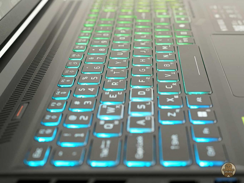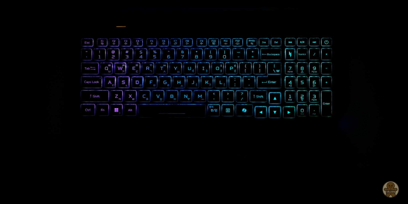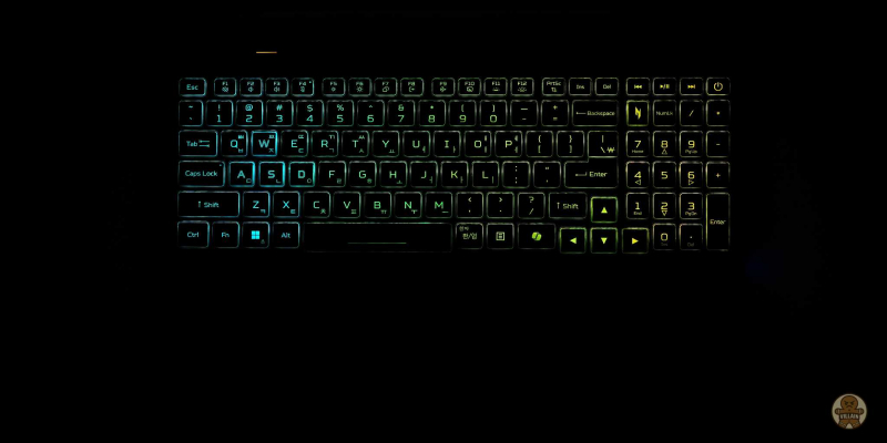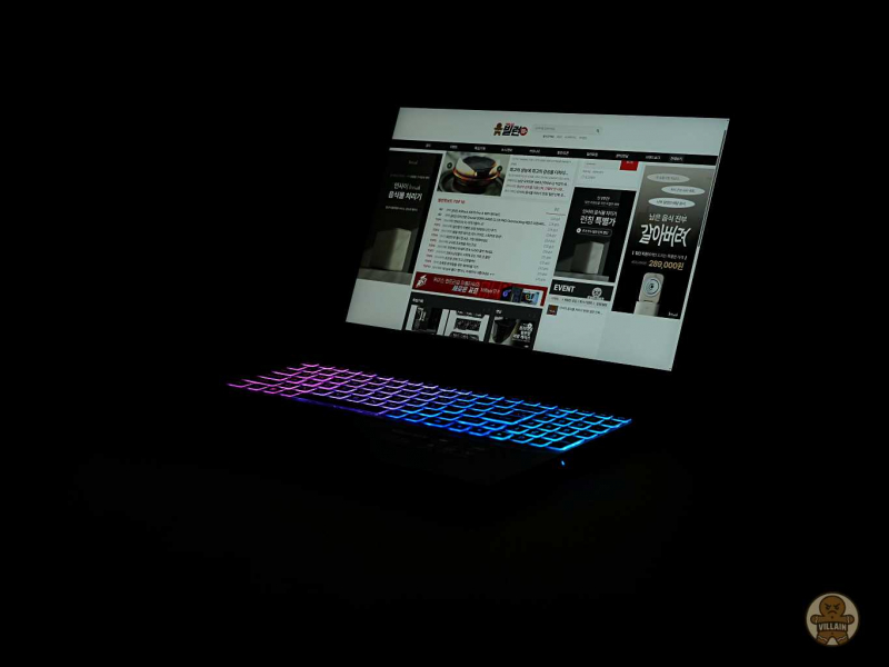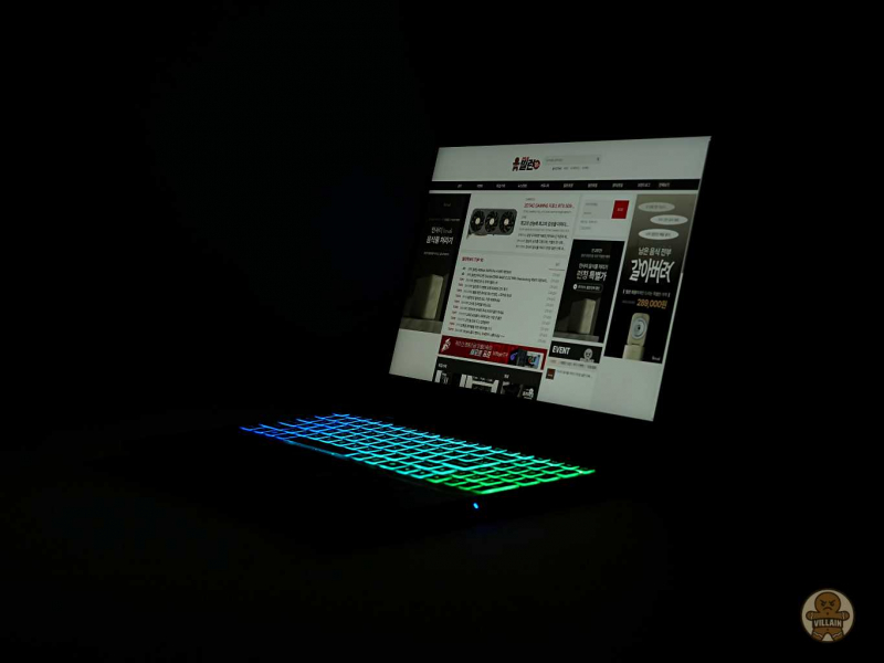 상판을 펴면 등장하는 RGB 키보드가 시야에 들어온다. 여기서야 비로소 ‘게이밍 DNA’가 조금 얼굴을 내민다. 4존 RGB 백라이트가 성격을 상징처럼 드러내는 부분. 색이 키캡 사이를 흘러가는 방식이다. 은근히 눈에 거슬리는 효과 대신 분위기에 적절히 녹아드는 세련된 효과를 적절히 구현해냈다. 마감 상태도 정갈해 키캡 주변에서 ‘빛샘’ 현상이 어색하게 번지는 거슬림도 없다.