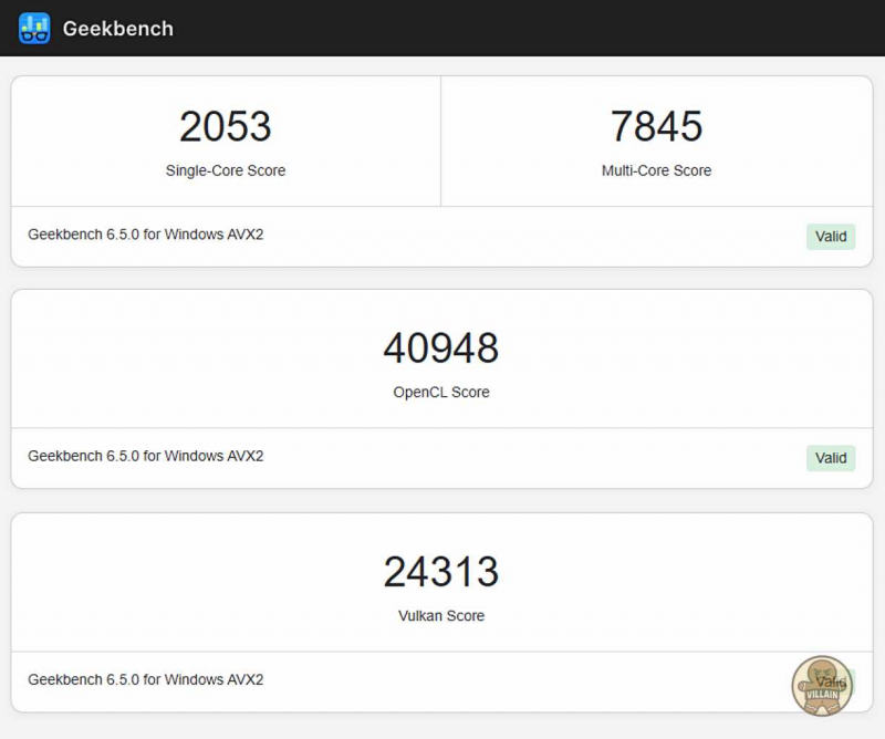 CPU 벤치 결과는 싱글코어 2,053점, 멀티코어 7,845점을 기록했다. 수치는 웹 브라우저, 오피스, 개발 도구 같은 일반 애플리케이션을 실행할 때 입력 후 반응 지연이 길게 늘어지지 않는다는 의미다. 멀티코어 점수를 보면 영상 인코딩, 대량 이미지 변환, 압축·해제처럼 스레드를 많이 쓰는 작업을 짧은 시간에 밀어낼 수 있는 여력도 충분하다.