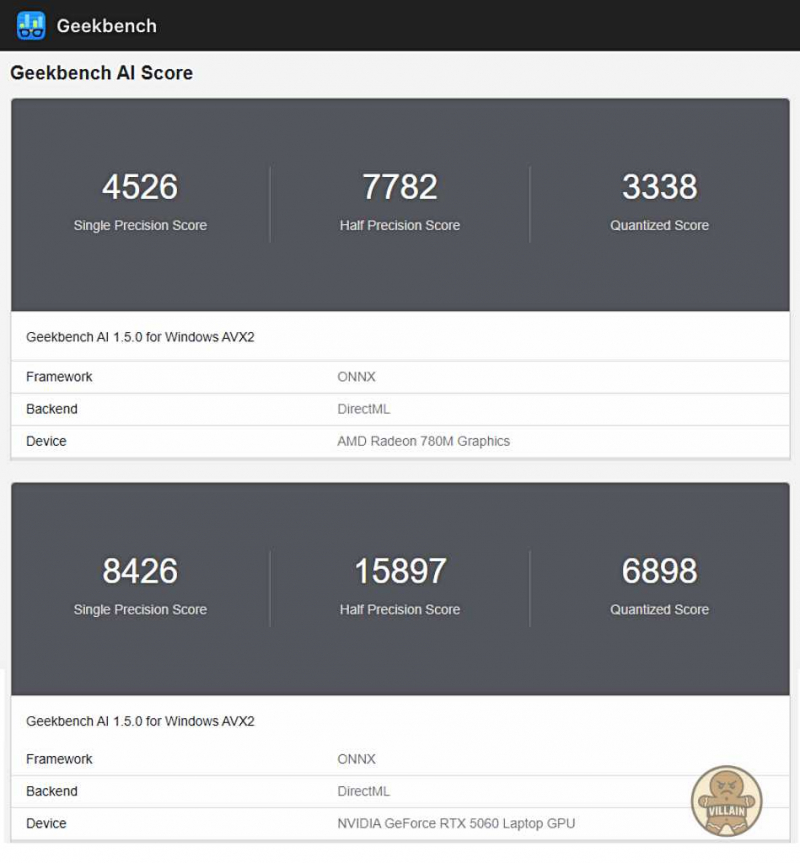AI 항목에서는 Radeon 780M와 RTX 5060의 역할이 나뉜다. 내장 GPU는 웹캠 배경 제거, 얼굴 인식, 간단한 실시간 보정 같은 가벼운 모델을 돌릴 때 쓸만한 성능이지만, RTX 5060은 이미지 생성·업스케일링·고해상도 노이즈 제거처럼 연산량이 많은 모델을 맡겨야 할 작업에서 처리 시간을 크게 줄이는 역할에 유리하다. 결과만 보자면 일반 업무, 개발, 영상·이미지 작업, 로컬 AI 활용까지 문제 없다.
