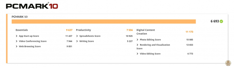 에이서 니트로 V 16S AI ANV16S-41-R6ZQ의 PCMark 10 결과는 종합 6,693점이다. 세부 항목은 Essentials 9,637점, Productivity 7,556점, Digital Content Creation 11,173점이다.