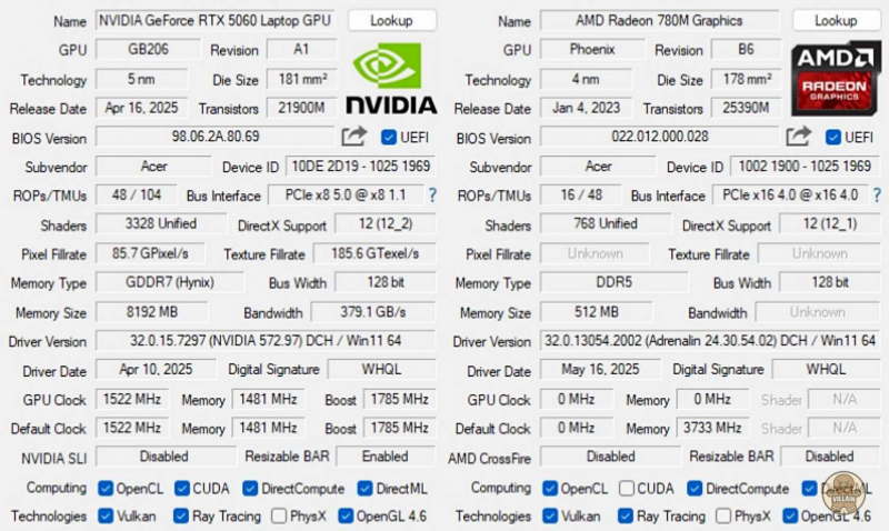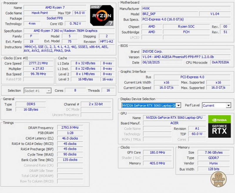 에이서 니트로 V 16S AI를 두고 “시대의 흐름을 모두 수용했다”는 말을 꺼내는 것이 과장이 아님은 장착한 부품의 면면을 분석할 수록 명확히 드러난다. 시피유는 NPU를 품은 라이젠 AI 7 260을 사용했고, 그래픽은 엔비디아 RTX 5060이다. 두 가지 조합에 대해 굳이 설명이 필요할 까 싶다. PC좀 사용해본 이라면 다들 아는 제품인만큼 좋고 나쁘고를 저울질 하는 건 부질없다.