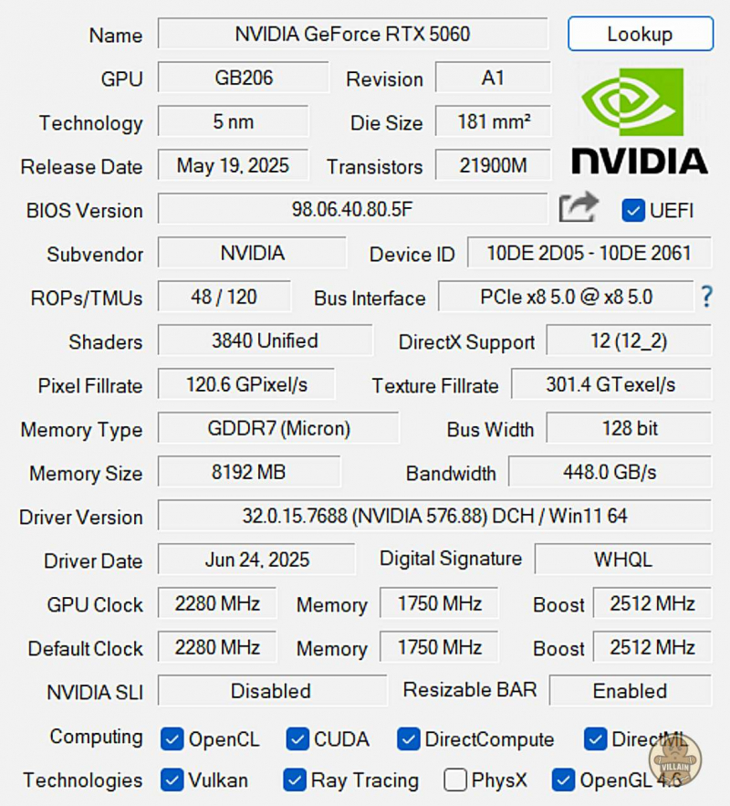 아키텍처 : NVIDIA Blackwell GB206 (GeForce RTX 5060)