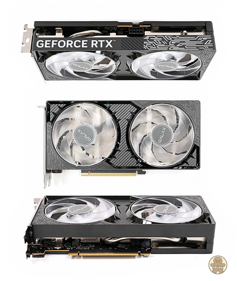 듀얼 팬이면 다 같은 듀얼 팬이 아니다. 팬이 작은데 RPM으로 밀어붙이는 제품은 소음이 생기고, 반대로 팬이 커도 블레이드 설계가 허술하면 공기 흐름이 산만해진다. GALAX는 여기서 92mm WINGS 3.0를 쓰는데, 이게 외형적으로도 티가 난다. 팬 직경이 여유 있게 잡혀 있어서 전면이 꽉 차 보이고, 블레이드가 얇게 흩어지는 형태가 아니라 공기를 모으는 방향(링 블레이드 계열)이라 시각적으로도 “기능성”이 느껴진다. 나는 이런 게 좋다. 디자인이 장식이 아니라 공학적으로 설계된 느낌.