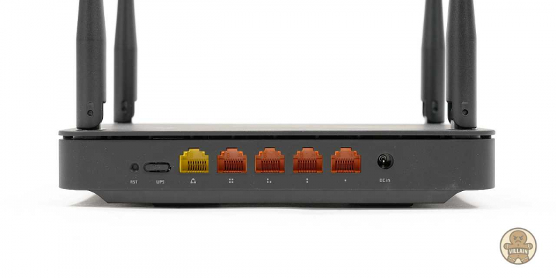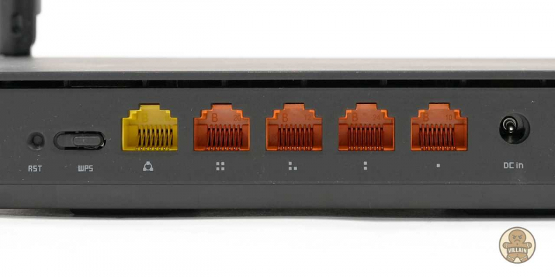 후면에는 WAN 포트 1개와 LAN 포트 4개가 배치돼 있다. 모두 기가비트(1Gbps)를 지원해 가정용 네트워크 환경에서는 충분한 대역폭을 제공한다. 좌측에는 리셋 홀과 WPS 버튼이, 우측에는 DC 전원 입력 단자가 위치한다.