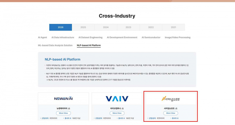 사이냅소프트는 한국인공지능산업협회가 선정하는 Emerging AI+X Top100에 2025년에 이어 2026년에도 이름을 올렸다. 사이냅소프트는 공공과 기업 시장에서 문서 기반 AI 전환 수요를 대상으로 솔루션 적용 범위를 확대하고 있다. 도큐애널라이저로 HWP 문서 구조 분석과 데이터화를 지원하고, 키냅스로 조직 지식 관리를 제공한다.