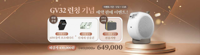 벤큐는 각도 조절 베이스와 최대 135도 회전 구조를 적용한 미니빔 프로젝터 GV32를 출시했다. 1080p 해상도와 500 ANSI 루멘 밝기, Google TV를 탑재해 스트리밍 콘텐츠 재생을 지원한다. 2.1채널 18W 스피커와 USB-C 전원 구성을 포함했으며, 1월 12일부터 1월 25일까지 예약판매 혜택을 운영한다.