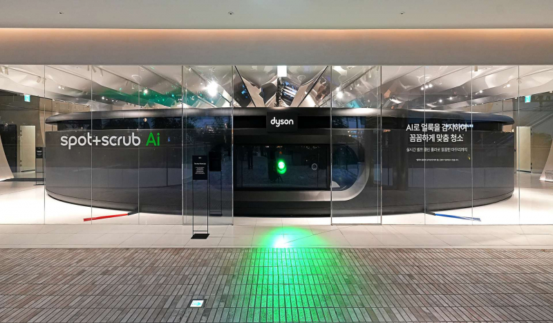 외관은 스팟앤스크럽 Ai 로봇 청소기 디자인 요소를 반영했고, 초록 조명 연출을 적용했다. 내부에는 초록 조명과 AI 기반 얼룩·먼지 감지 요소를 시각화한 일루미네이션 룸을 구성했다. 대형 롤러와 제품 모형을 배치해 기기 구조와 작동 원리를 확인할 수 있도록 했다.
