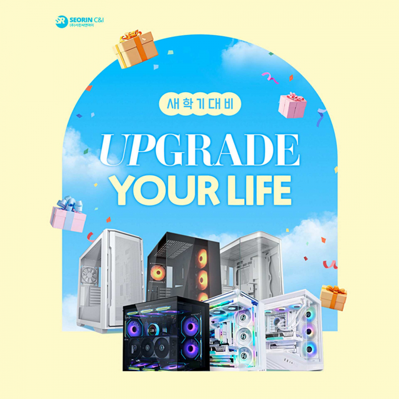 컴퓨터 주요 부품 수입·유통 기업 서린씨앤아이가 새 학기 시즌에 맞춰 UPGRADE YOUR LIFE 프로모션을 진행한다. 서린씨앤아이 유통 제품으로 구성된 조립PC를 구매하면 사은품 2종을 받을 수 있다.