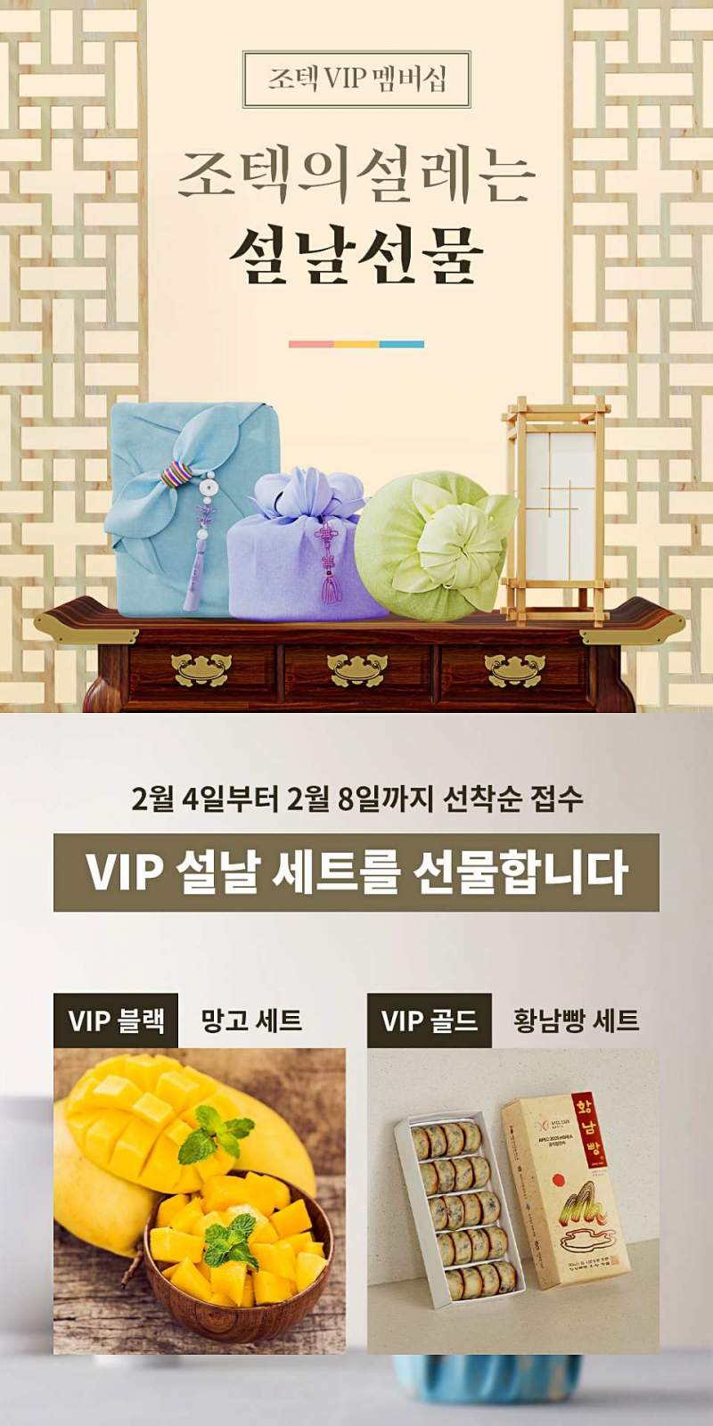 2월 리워드는 VIP 등급별 명절 선물로 구성된다. ZOTAC GAMING GeForce RTX 5090 구매자에게 제공되는 조텍 VIP 블랙 등급은 망고 세트를, ZOTAC GAMING GeForce RTX 5080 구매자에게 제공되는 조텍 VIP 골드 등급은 경주 황남빵 세트를 증정한다.