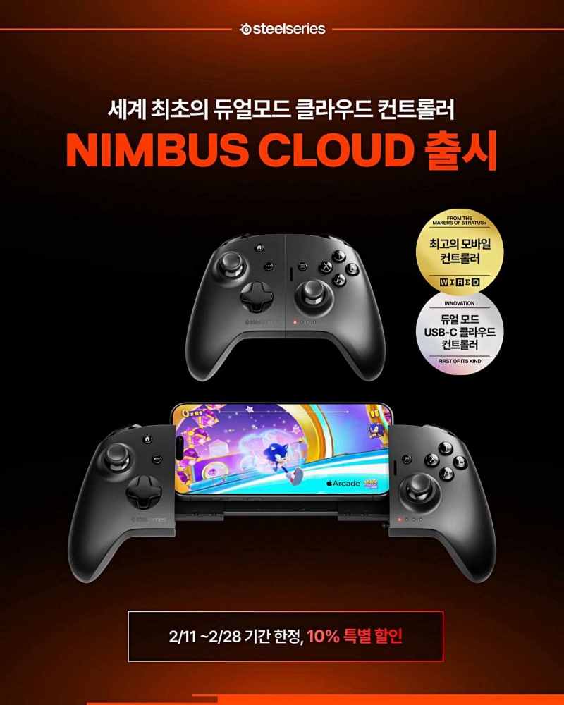 스틸시리즈가 듀얼 모드 클라우드 게임 컨트롤러 님버스 클라우드를 출시한다.