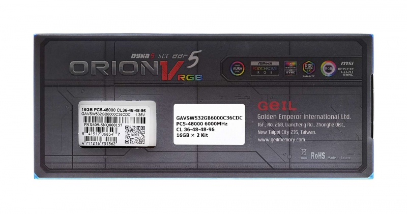 ◆ GeIL DDR5-6000 CL36 ORION V RGB WHITE 패키지 32GB(16GBx2)
