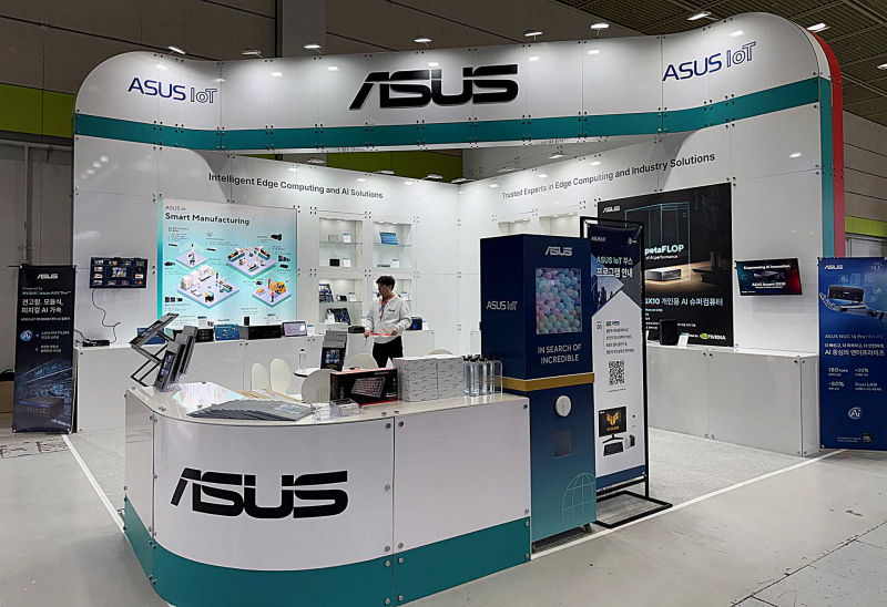 ASUS showcases edge AI computers and mini PCs at AW2026 in Seoul. The booth features PE3000N and RUC-1000G for industrial AI workloads, plus compact systems such as NUC 16 Pro and Ascent GX10 for business edge deployments. Visitors can see multi-I/O designs, rugged options, and networking features for data-heavy environments.