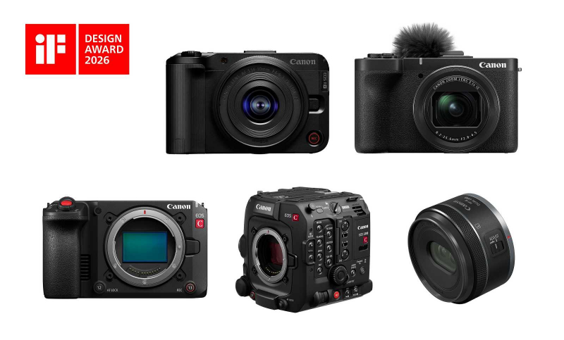 Canon won five iF Design Award 2026 awards, extending its winning streak to 32 consecutive years with recognized products including the EOS R50 V, PowerShot V1, EOS C50, EOS C400 and RF-S7.8mm F4 STM DUAL.