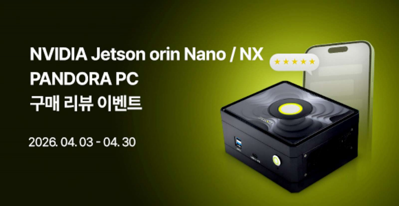 EMTEK is running a review event for buyers of three PANDORA AI PC models powered by NVIDIA Jetson Orin Nano and NX. Participants can receive Naver Pay rewards for photo reviews and detailed user posts, while the systems offer edge AI performance, flexible expansion and a two-year warranty.