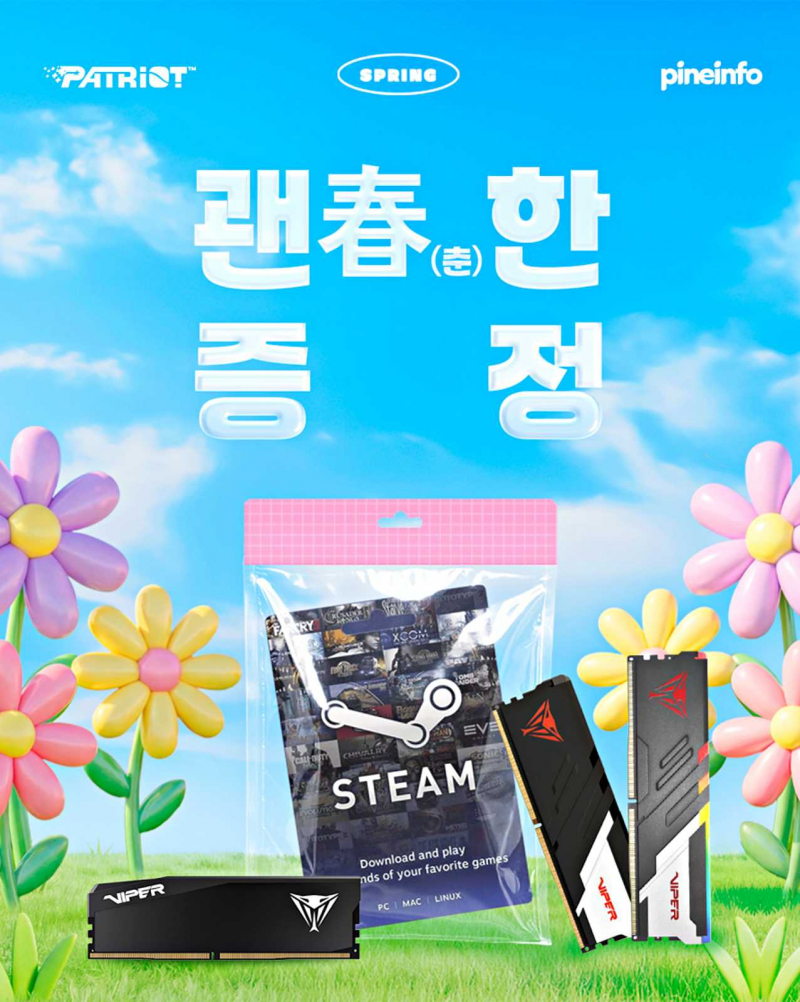 PC 메모리와 SSD 등 반도체 부품 유통 전문기업 파인인포가 PATRIOT 고성능 DDR5 메모리 지정 제품 구매 고객을 대상으로 스팀 월렛 증정 프로모션을 진행한다고 밝혔다.