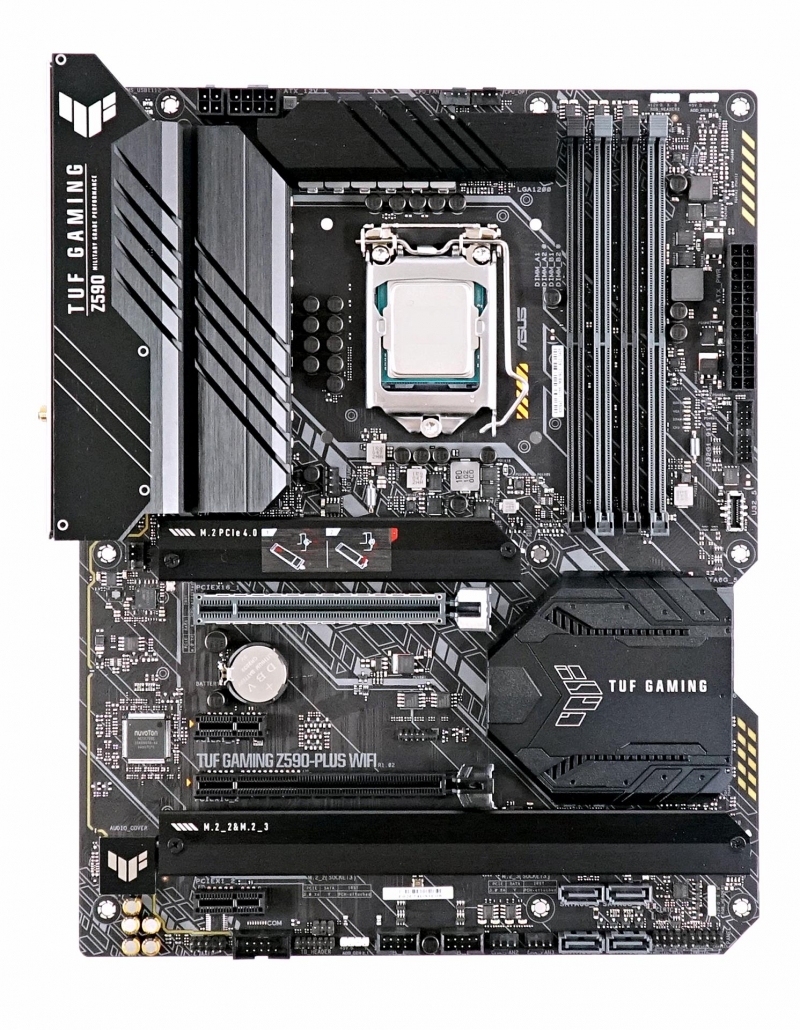 밀리터리 등급의 내구성을 강조한 ASUS TUF Gaming Z590-PLUS WIFI는 디자인부터 군사 기기를 연상하게 한다. TUF 제품의 아이덴티티가 그대로 녹아든 덕분에 전작의 형상이 교차한다. 하지만 약 3인치가 더 커졌다. 30.6cm X 24.4cm 사이즈는 냉각(쿨러) 시스템을 보강하면서 발생한 현상.