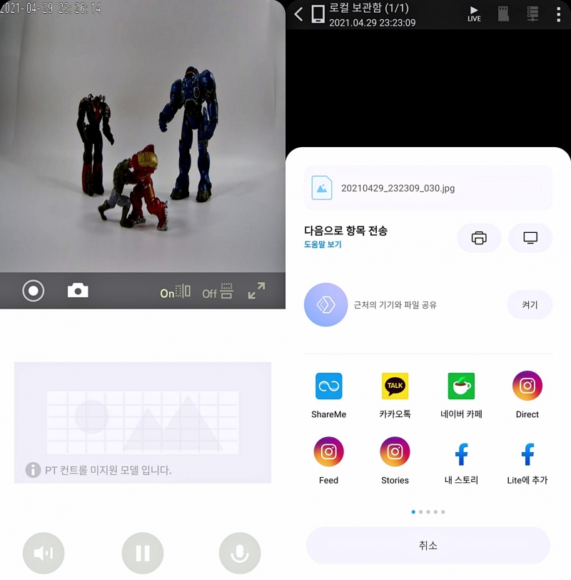 마이크로 SD카드로 128GB까지 지원하며, 애플리케이션을 통한 실시간 모니터링은 기본이다. 아이피타임 NAS를 이용하는 사용자라면 중요한 화면에 대한 별도 장기 보관도 가능하다. 원격으로 녹화 또는 캡처한 사본 공유도 바로 이뤄진다. 편의성 하나는 끝판왕이다.