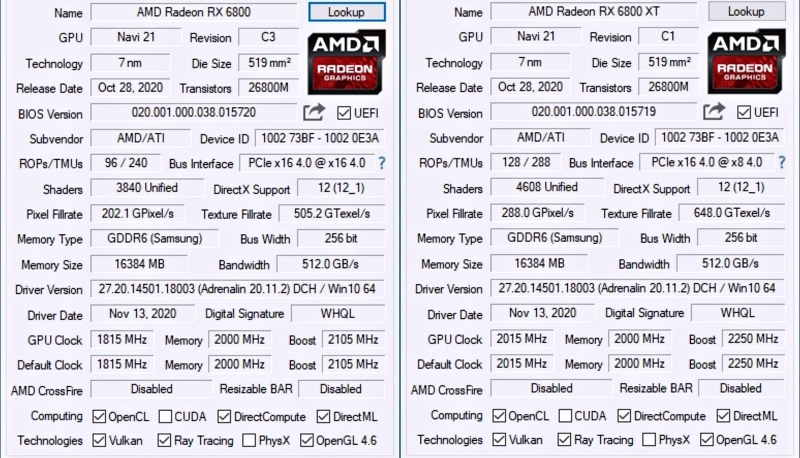 바로 라데온 RX 6800 그리고 RX6800XT 그래픽카드가 대표적이다.