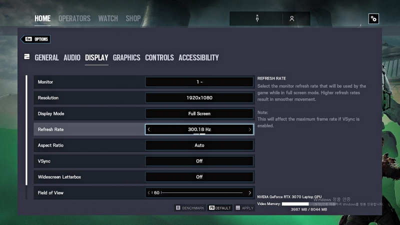 △ 디스플레이 성능을 십분 활용하기 위한다면 주사율 세팅 300Hz가 필수다.
