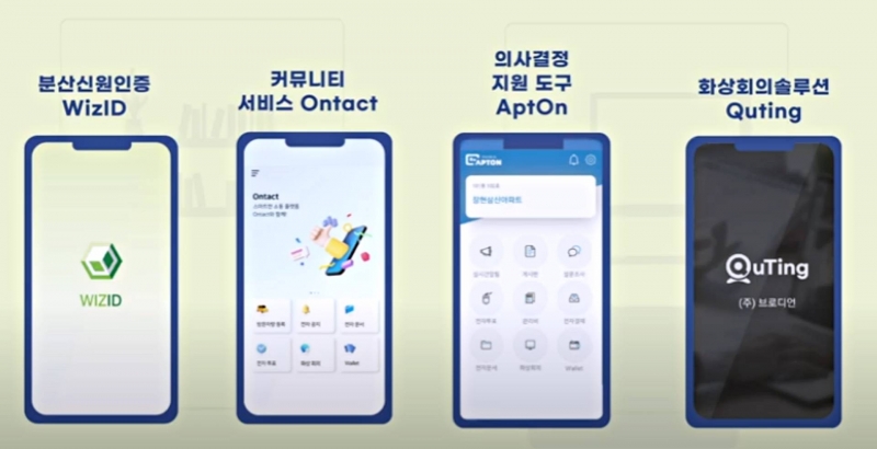 지난 2020년 과학기술정보통신부(이하 과기정통부)의 “분산 신원확인 기술 기반 비대면 서비스 플랫폼 개발” 과제로 개발된 것으로 블록체인 DID(분산 신원확인 기술, Decentralized Identifier)과 영지식증명(Zero-Knowledge Proof) 기술을 이용해 입주민의 블록체인 모바일 디지털 신분증 발급하는 서비스다. 아파트 전자공지, 전자결재 및 전자투표, 영상회의 등 비대면 주민참여 서비스에서 입주민 신원증명을 Untact, Ontact로 가능케 했다.