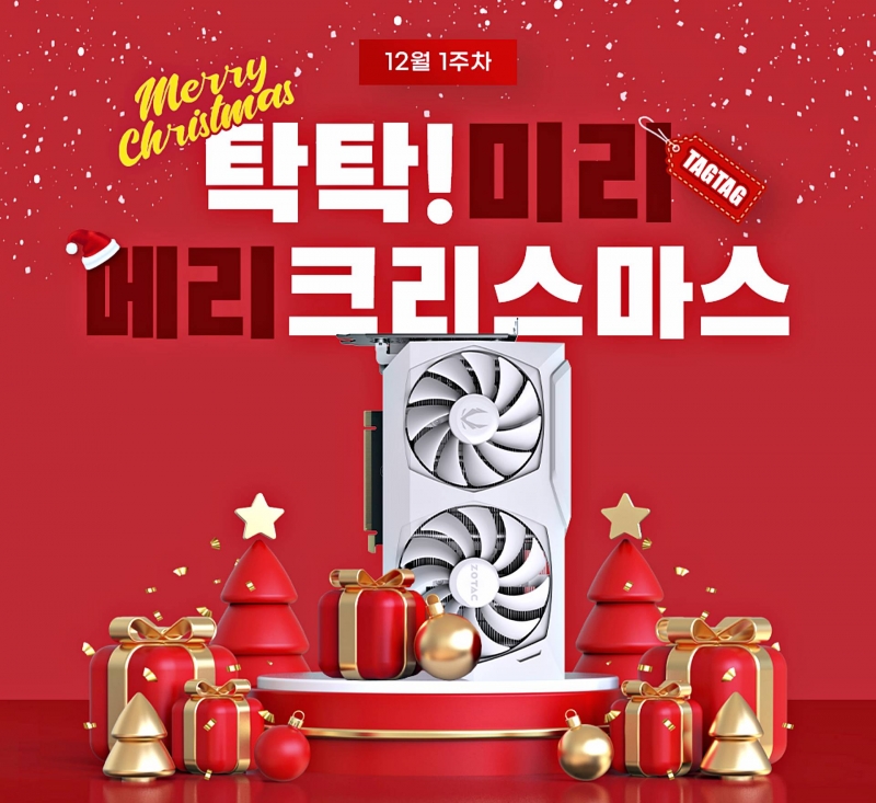 자사 쇼핑몰 탁탁몰(www.tagtag.co.kr)에서 약 4주간 산타 사은품을 증정하는 ‘탁탁 미리 메리 크리스마스’ 이벤트를 공모했다. 첫째 주부터 넷째 주까지 매주 목요일 오후 2시가 되면 조텍 지포스 그래픽카드와 함께 조텍 자체 사은품을 함께 증정하는 행사다. 물론 신비함과 기대 심리를 자극하고자 제품과 사은품은 그때 그때마다 변경한다고. 게다가 수량도 한정해 경쟁 심리도 자극한다.