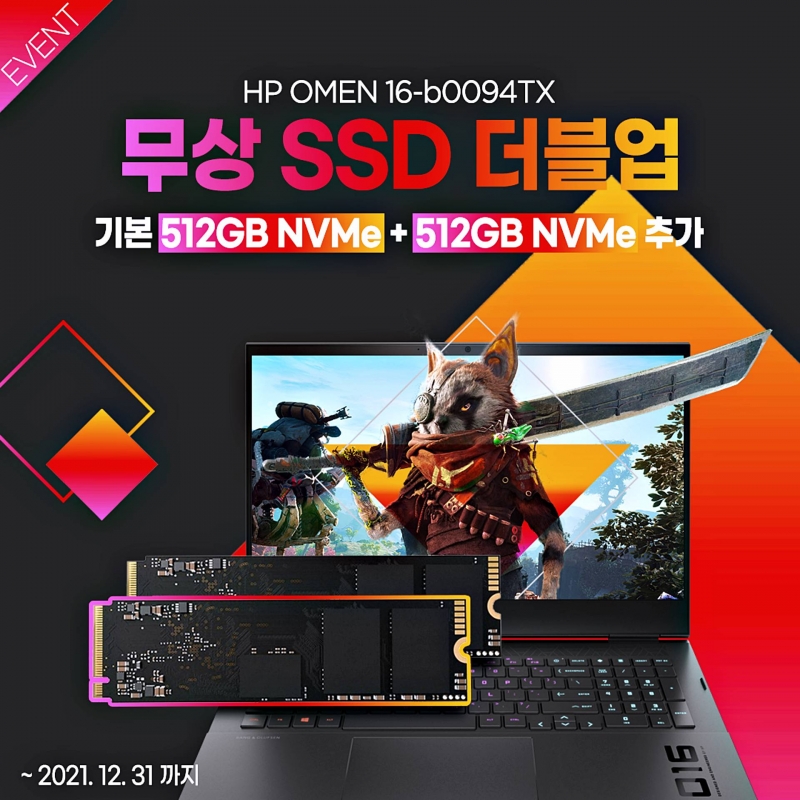 이러한 오랜 숙원에 아인스시스템이 답을 내놨다. 512GB M.2 NVMe SSD를 한 개 더 추가하겠다는 결단이다. 단 OMEN 16-b0094 TX 노트북에 한해서다. 뜬금없이 특정 제품만?이라는 의구심이 들 수 있기에 첨언하자면 앞서 준비한 1차 물량이 빛의 속도로 완판 되었다고.