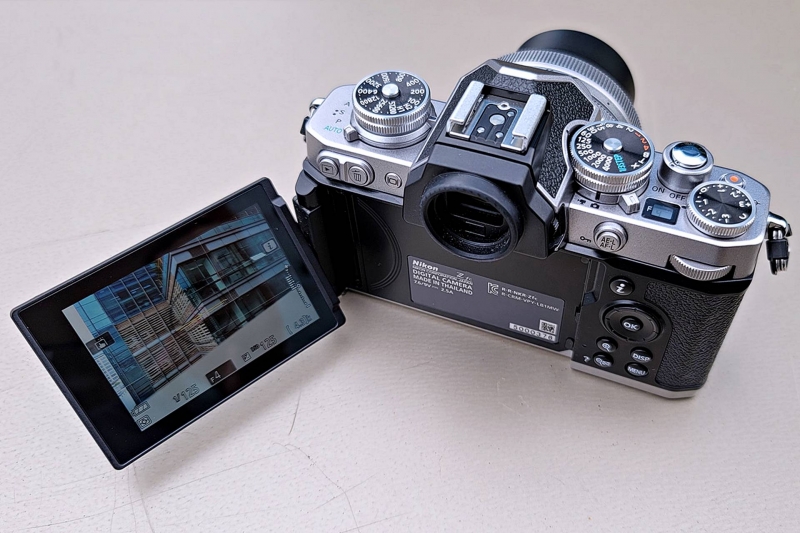 오른쪽에는 셔터 속도 조작 다이얼과 사진, 영상 전환 스위치, 셔터 버튼과 전원 스위치, 동영상 녹화 버튼, 노출 조절 다이얼 등이 배치되어 있다. 흥미로운 점은 이 부분에 작은 액정 디스플레이에 있다. 타 카메라는 액정이 없거나 큰 디스플레이에 셔터 속도와 조리개 등 다양한 정보를 보여주는데 여기에서는 순수하게 조리개 수치만 표시한다. 이 때문에 Z fc의 클래식함이 극대화되는 느낌이다.