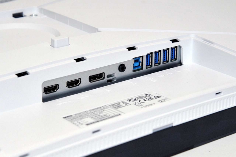 디스플레이 전면 베젤을 무광 블랙으로 처리해 사용 중 빛반사나 눈부심 등을 방지하고, 후면을 최근 선호도가 높아지고 있는 화이트로 투톤 처리한 것도 이채로운 부분. 덕분에 큼직한 모니터가 한결 가볍고 산뜻하게 마감된 느낌이다. 벤큐 특유의 이너베젤 적용으로 외부 베젤이 거의 없는 듯 시원한 느낌을 주는 점도 긍정적이다.