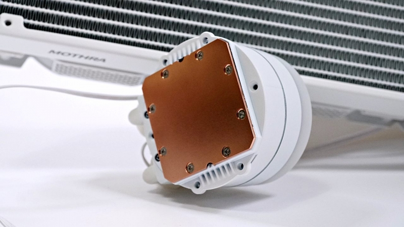 여기에 더해진 120mm의 쿨링팬은 요즘 대부분의 수랭 쿨러에 적용되고 있기 때문에 모쓰라 360이라고 특별할 건 없다. 주목할 부분은 바로 38mm 대구경 임펠러인데, 워터블럭 내부에 적용된 이 임펠러는 쿨링 시 소음을 최소화하고 동시에 냉각수를 빠르게 워터블럭 내부의 미세수로로 통과시킨다.
