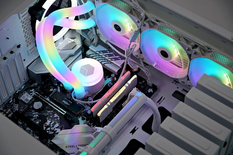 그냥저냥 포인트만 주는 ‘시늉만’ 하는 RGB 효과가 아니다. PC 내부를 훤히 비출 정도로 현란한 모쓰라 360의 RGB 효과는 마치 진정한 RGB 쿨링이란 바로 이런 걸 말하고 싶었다는 듯 화려함의 극치를 보여준다.