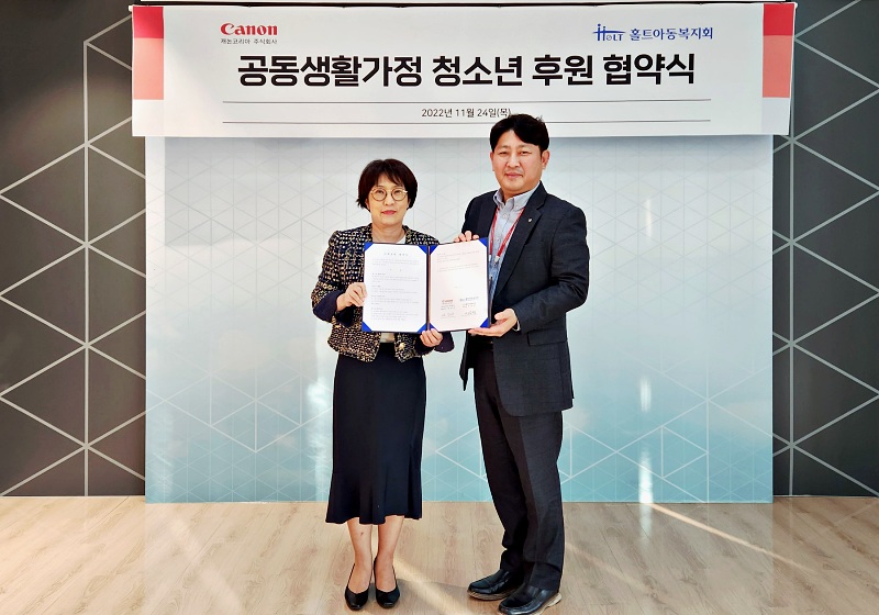자립 준비 청년의 사회 진출에 캐논코리아와 홀트아동복지회가 힘을 모으기로 했다. 지난 24일 홀트아동복지회 본사에서 캐논코리아 김정현 경영지원부문장, 홀트아동복지회 이수연 회장 등 주요 임직원이 참석한 가운데 내일 맑음 지원 사업 협약식이 진행됐다. 양사는 협약을 통해 복지 사각지대에 놓인 만 18세 이상 19세 미만의 공동생활가정 청소년 10명을 선발해 자립을 위한 실질적 도움 제공에 합의했다.