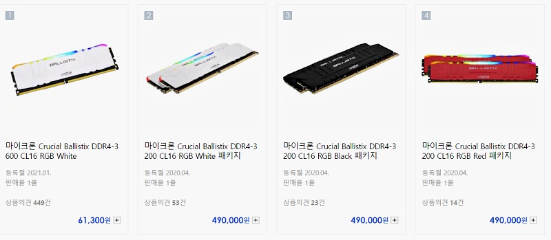 가성비를 중시하는 사용자라면 DDR4 메모리 조합이 좋다. 이때 추천하는 제품은 대원씨티에스가 수입/유통하는 마이크론 크루셜 발라스틱 화이트 고성능 튜닝 메모리다. 화이트 색상의 방열판 위에 미려한 색상을 뽐내는 RGB가 일체형으로 구동하며, 원한다면 동기화도 가능하기에 PC 전체 효과를 일체감 있게 세팅할 수 있다.