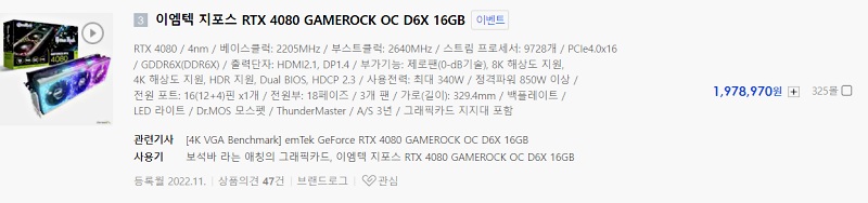 큰 비용 투자가 필요하다. 감염병 사태 3년 사이 그래픽카드 가격은 이전 대비 최소 3배 이상 상승했다. 30만 원 미만 그래픽카드는 사실상 씨가 마른 상태. 이미 수년 전 신제품이 다시금 등장하며 숨통이 트였지만 과거 모델이라는 점에 아쉬울 수 있다.