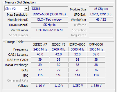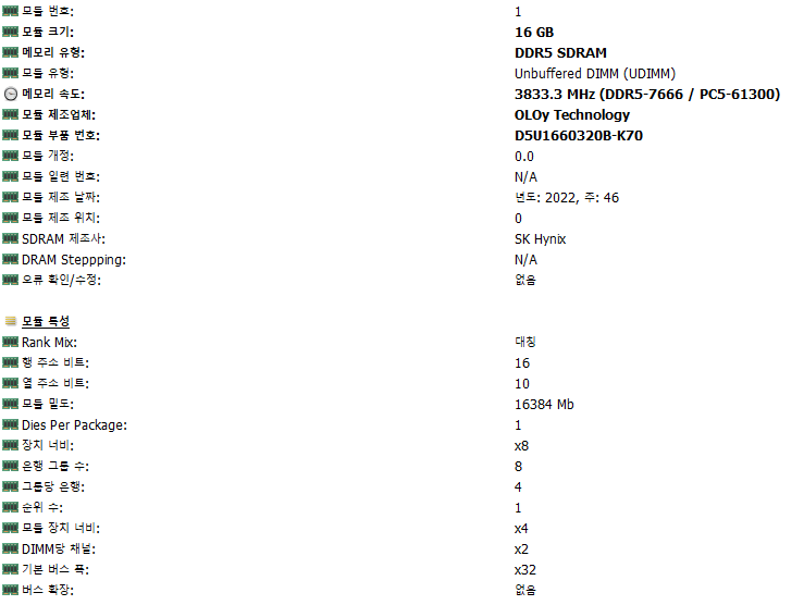 고성능 메모리라 하면 통상 2개가 한 세트로 구성된다. 대역폭을 2배로 늘리는 듀얼 채널 기술을 사용하기 위해서다. OLOy DDR5-6000가 16기가 2개의 세트 상품으로 구성됐다는 것이 고성능을 암시하는 하나의 표식인 셈이다.