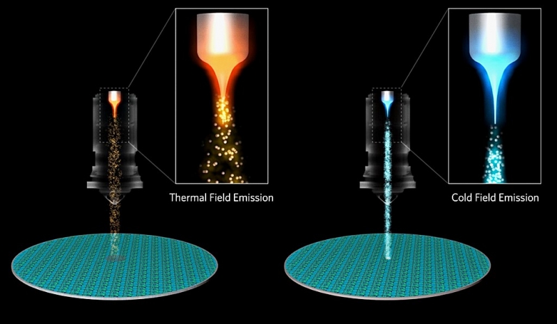 기존 고온전계 방출형(TFE∙Thermal Field Emission) 전자빔 시스템은 섭씨 1500도 이상에서 작동한다. 온도를 낮추면 빔 폭은 좁아지고 전자 개수가 많아지기 때문에 물리학자들은 나노미터 이하의 이미지 분해능 및 10배 빠른 이미징 속도를 구현하는 CFE 전자빔 기술 상용화에 기대를 걸었다.
