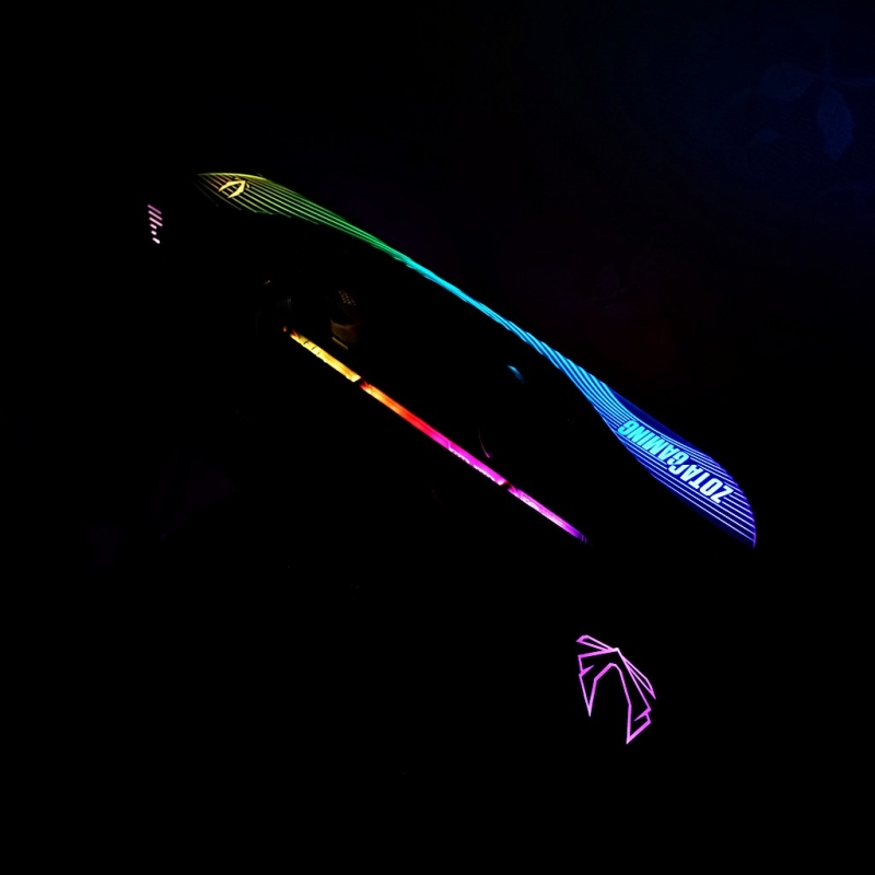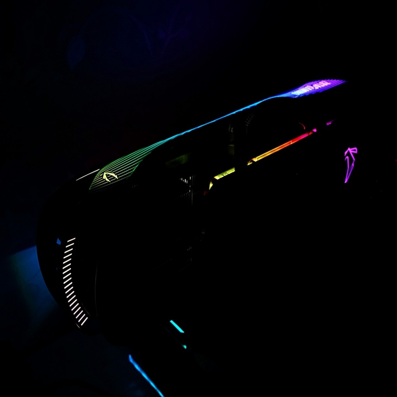 특히 화이트 콘셉트 컬러라는 점은 작정하고 화려하기로 했다는 것을 뜻한다. 비주얼적인 변화는 확연히 화려해진 RGB 효과에서 도드라진다. 카드의 상단, 전면, 후면, 측면에 이르기까지 5개의 영역인데 각각의 ARGB LED 컬러를 지정할 수 있게 했다.