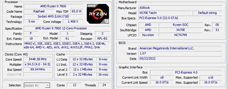 CPU : AMD 라이젠 R9 7900 non-x