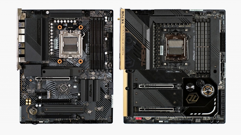 ▲ 좌즉사진. 애즈락 TAICHT X670E 메인보드는 AMD R9 7950X3D 시피유 엠바고 당시 AMD가 벤치마킹 추천 메인보드로 기자단에게 안내한 바 있다. 우측사진. 애즈락 X670E PG LIGHTNING 제품이다. 두 제품은 대원씨티에스가 유통한다.