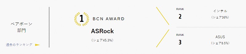 ▲ 일본 BCN 2022 어워드에서 베어본은 부동의 1위, 메인보드는 2위 점유율로 존재감을 드러낸 ASROCK. 한국보다 3배 이상 큰 PC시장에서 높은 인지도를 자랑한다.