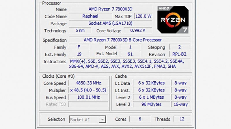 7950X3D - 16C32T / 4.2~5.7GHz / 144MB (L2+L3) / TDP 120W / 89℃