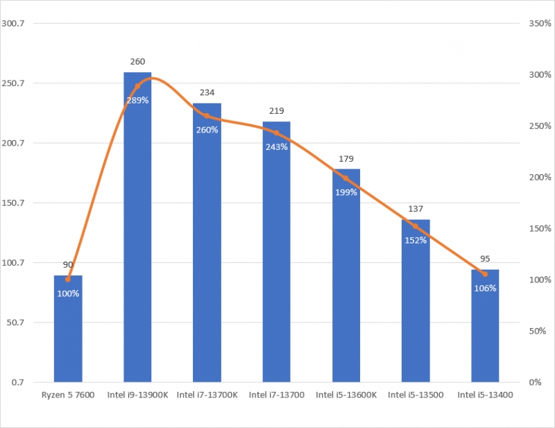 Intel i9-13900K 260 289%