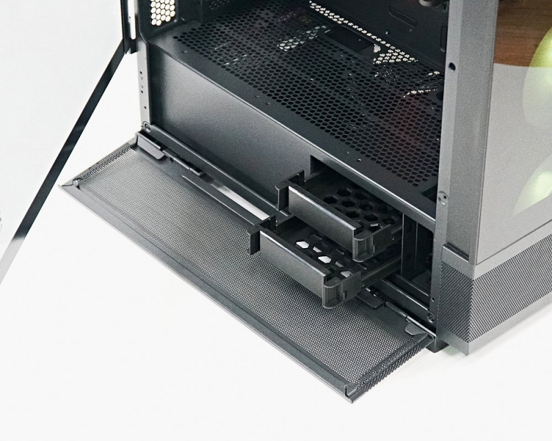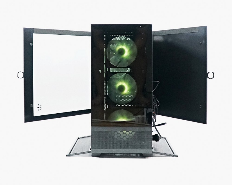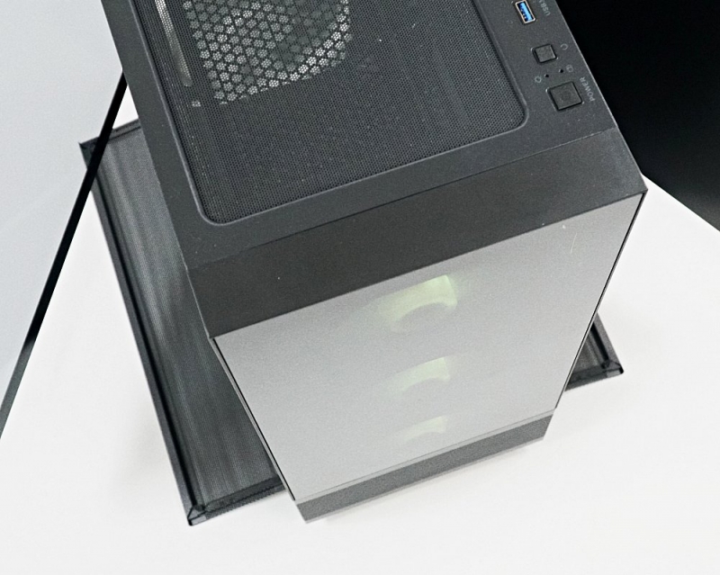 패널 설계 또한 특이하다. 최근의 디자인 트렌드인 전면 강화 유리 패널이지만, 마이크로닉스는 하단에 메쉬 패널을 적용해 2단 형태로 개폐할 수 있게 했다. 누가 봐도 이 제품은 마이크로닉스의 제품임을 알아볼 수 있는 아이덴티티 역할까지 한다.