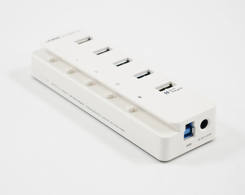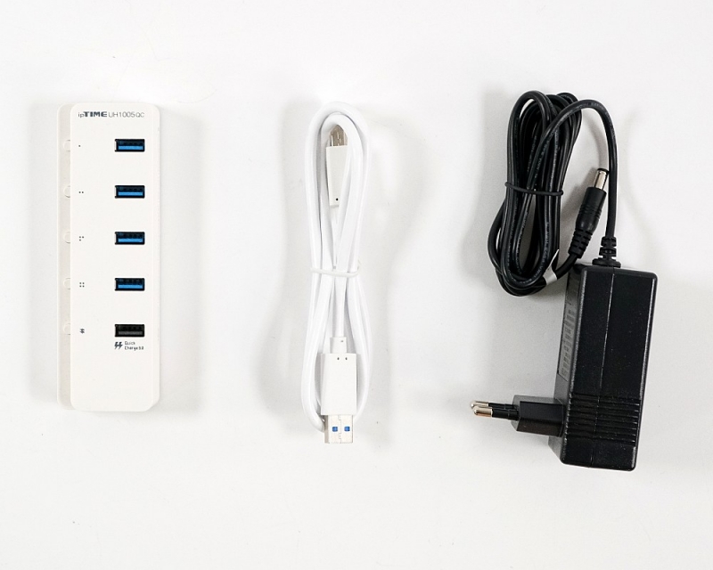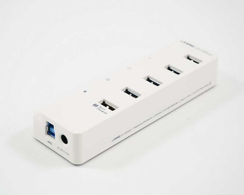 ▲ 아이피타임은 5포트 USB-A 3.1 규격 허브를 출시했다. 별도 전원을 공급하는 어댑터를 기본으로 제공한다. 전력 소모가 심한 외장하드 연결에도 안정된 구동을 보장한다.