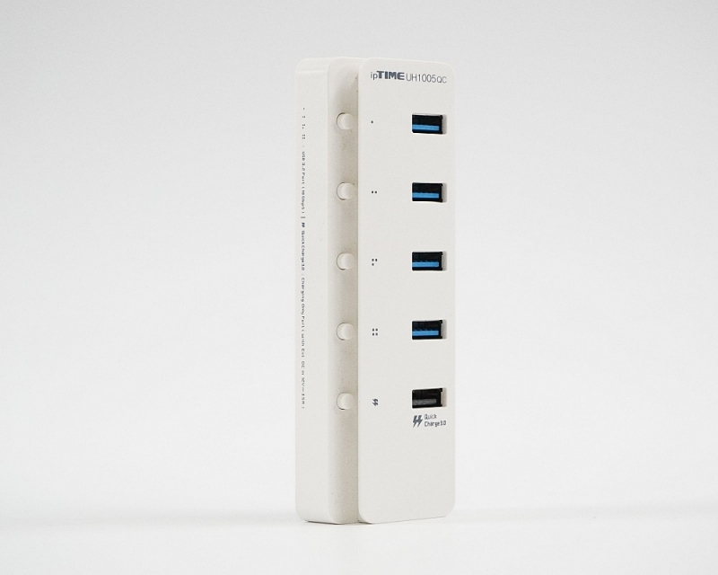 ipTIME UH1005QC는 4개 USB 3.2 Gen2포트와 1개 충전 포트로 구성된 USB 허브로 PC나 노트북 등의 부족한 USB 포트 문제를 해결하는 제품이다. 핵심은 속도다. 4개 데이터 포트는 각각 USB 3.2 2세대 기반으로 빠른 전송속도를 자랑한다.