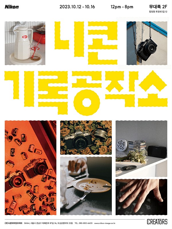 전시존에서는 니콘의 다양한 제품과 함께 Z fc를 이용해 자신만의 취향을 담아 일상을 기록해온 오감기록단의 작품을 만날 수 있다. 체험존 니콘 아지트에서는 신제품 Z f와 Plena 렌즈 체험 기회를 제공하며 굿즈존 작은 기록의 방에서는 크리에이터스 굿즈와 매거진을 진열한다.