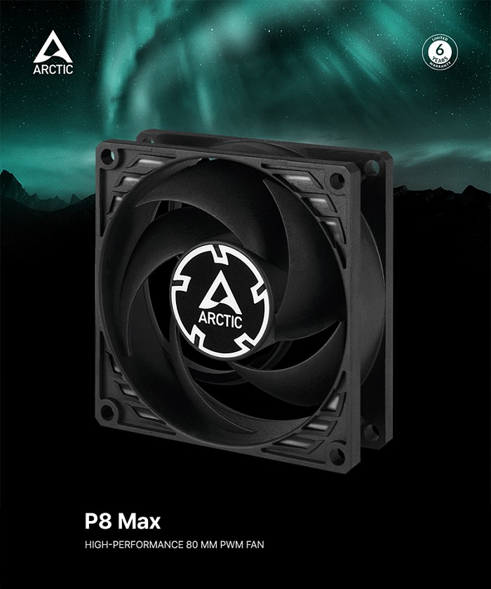 아틱 쿨링팬 독점 공급원 서린씨앤아이가 80mm 규격 쿨링팬 신제품 P8 시리즈 2종을 공개했따. 제품 스펙에 따라 P8 MAX와 P8 PWM PST로 나뉘며, P8 PWM PST 모델은 다섯 개를 패키지로 구성한 밸류팩(Value Pack)으로 분류된다.