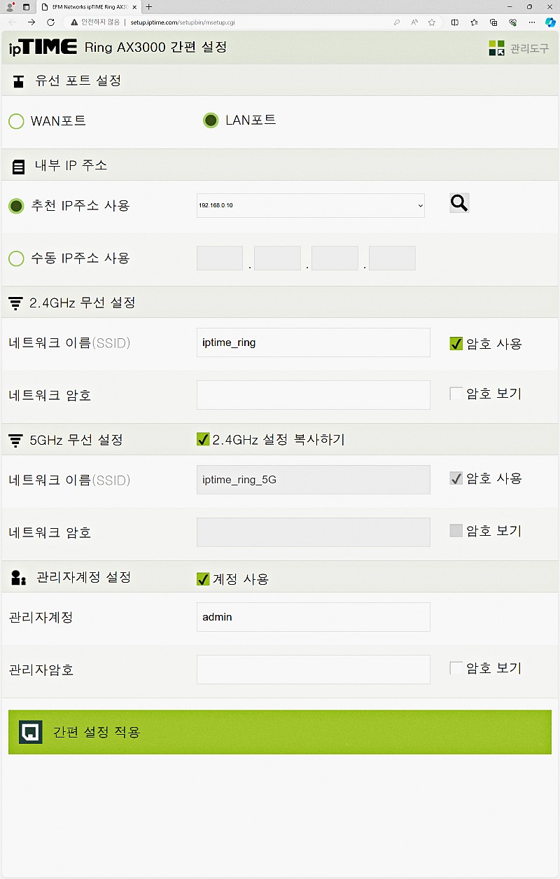 하드웨어 연결 이외의 소프트웨어 세팅 역시 간단하다. 국내 1위 회사로 이름 놓은 아이피타임 제품인 만큼 자체 소프트웨어인 이지메시(EasyMesh)를 이용하면 쉽게 메시 와이파이를 구축할 수 있다. 메시 와이파이는 기본이 되는 공유기를 포함해 각종 무선 네트워크 장치를 그물망처럼 연결한다. 넓고 장애물 많은 공간에서 통합적인 무선 네트워크를 사용자에게 제공하므로 이용하는 것이 좋다.